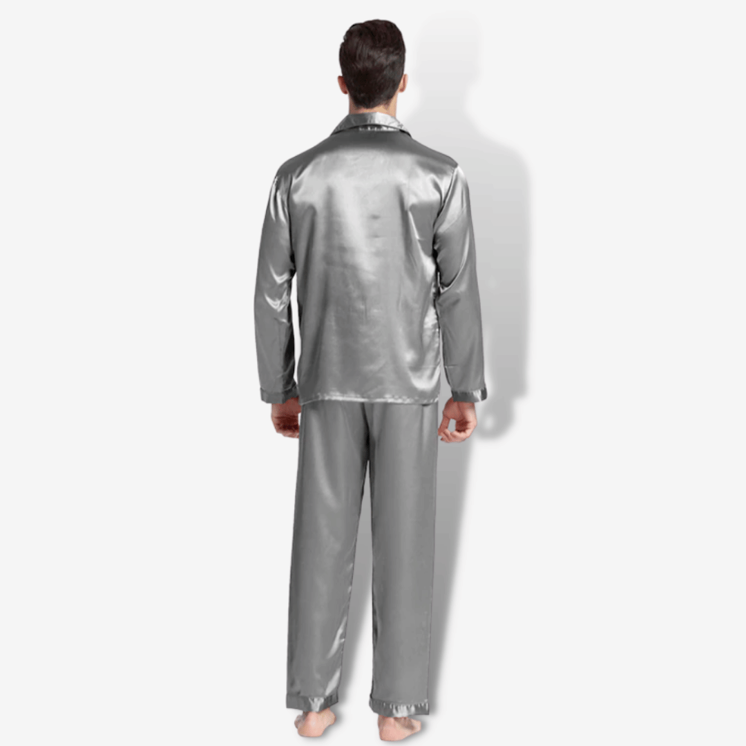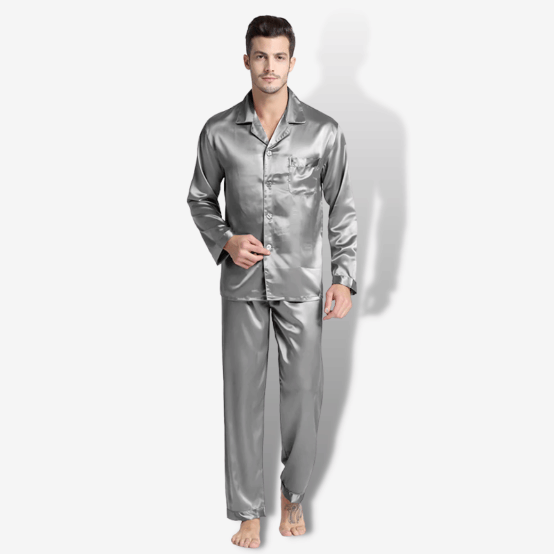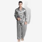 Are you looking for a luxurious and comfortable way to end the day? Look no further than our pearl gray silk men's pajamas! Made from silk satin, these pajamas are soft and comfortable, perfect for a relaxing evening at home. The modern style is sure to add some spice to your evening, while the rich gray tone will make you stand out from the crowd. Whether you're relaxing on the sofa or snuggled up in bed, we're confident you'll love the luxurious feel of our pearl gray men's silk pajamas!