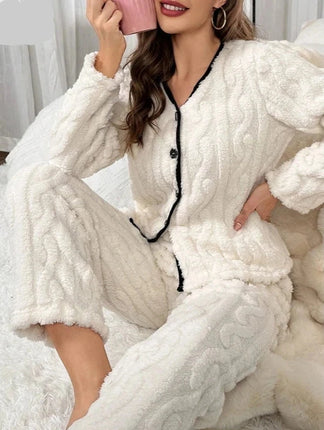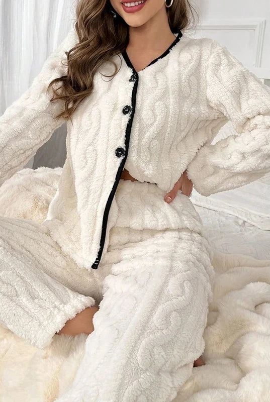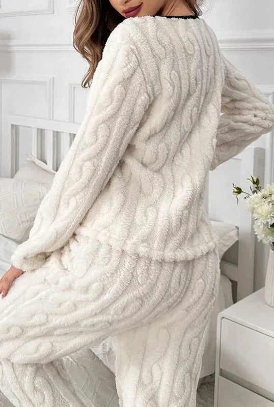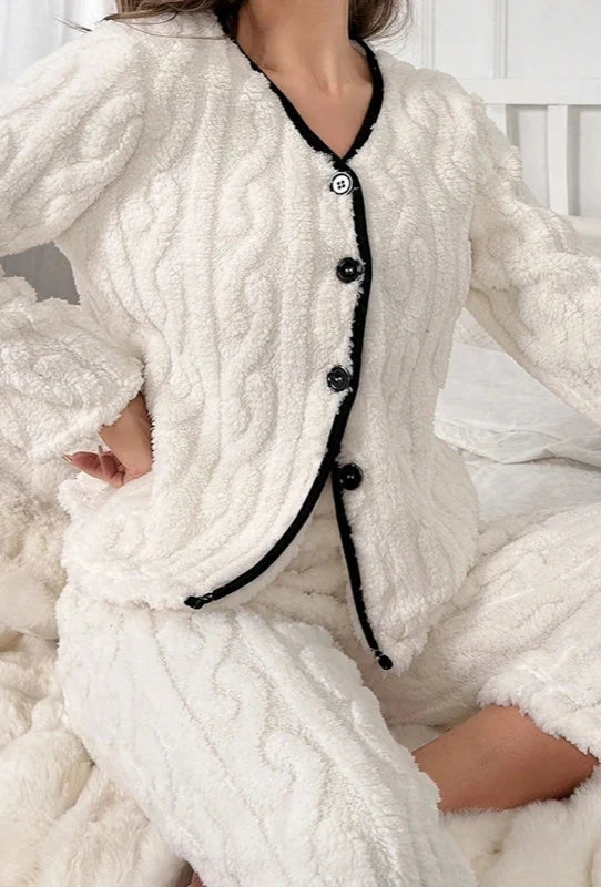 Morbidezza e Comfort: Il pigiama bianco in pile da donna è realizzato con un tessuto soffice e traspirante, garantendo il massimo comfort e mantenendo il calore corporeo anche nelle notti più fredde.