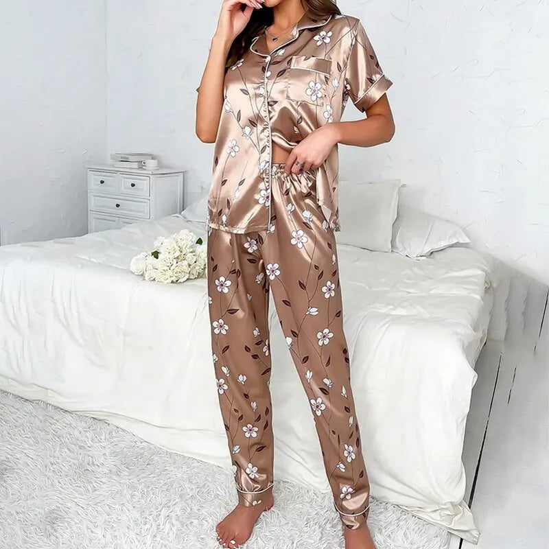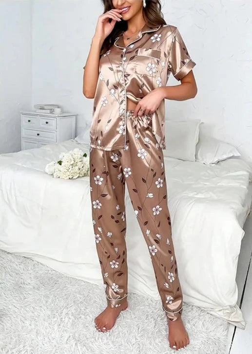 Pigiama Elegante da Donna in Pura Seta con Stampa Floreale