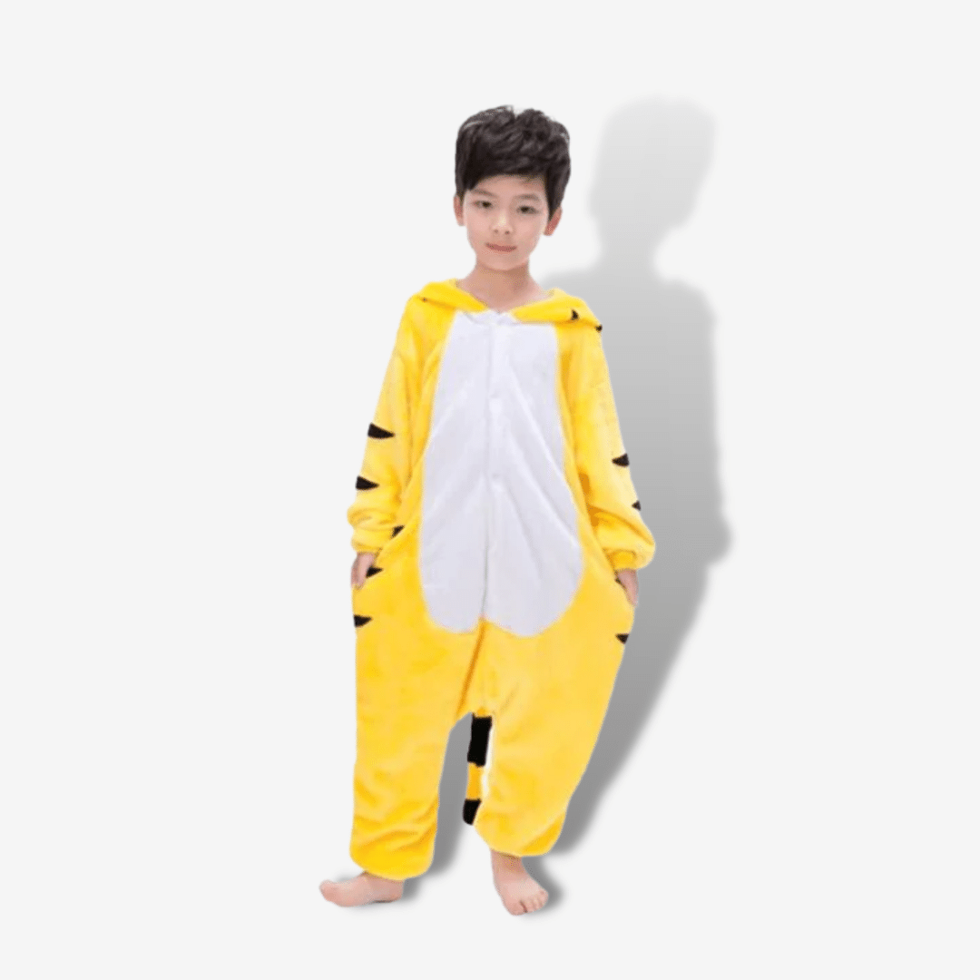 Pigiama intero per bambino a forma di animale tigre.