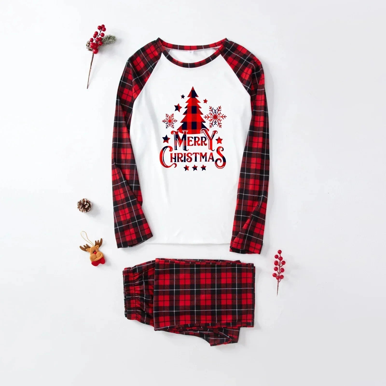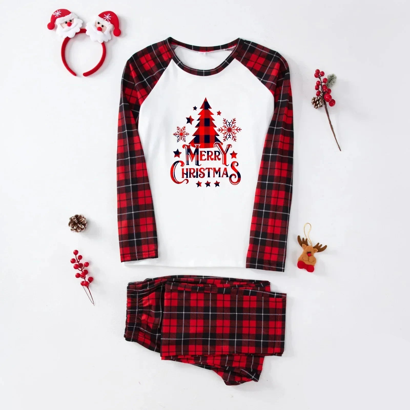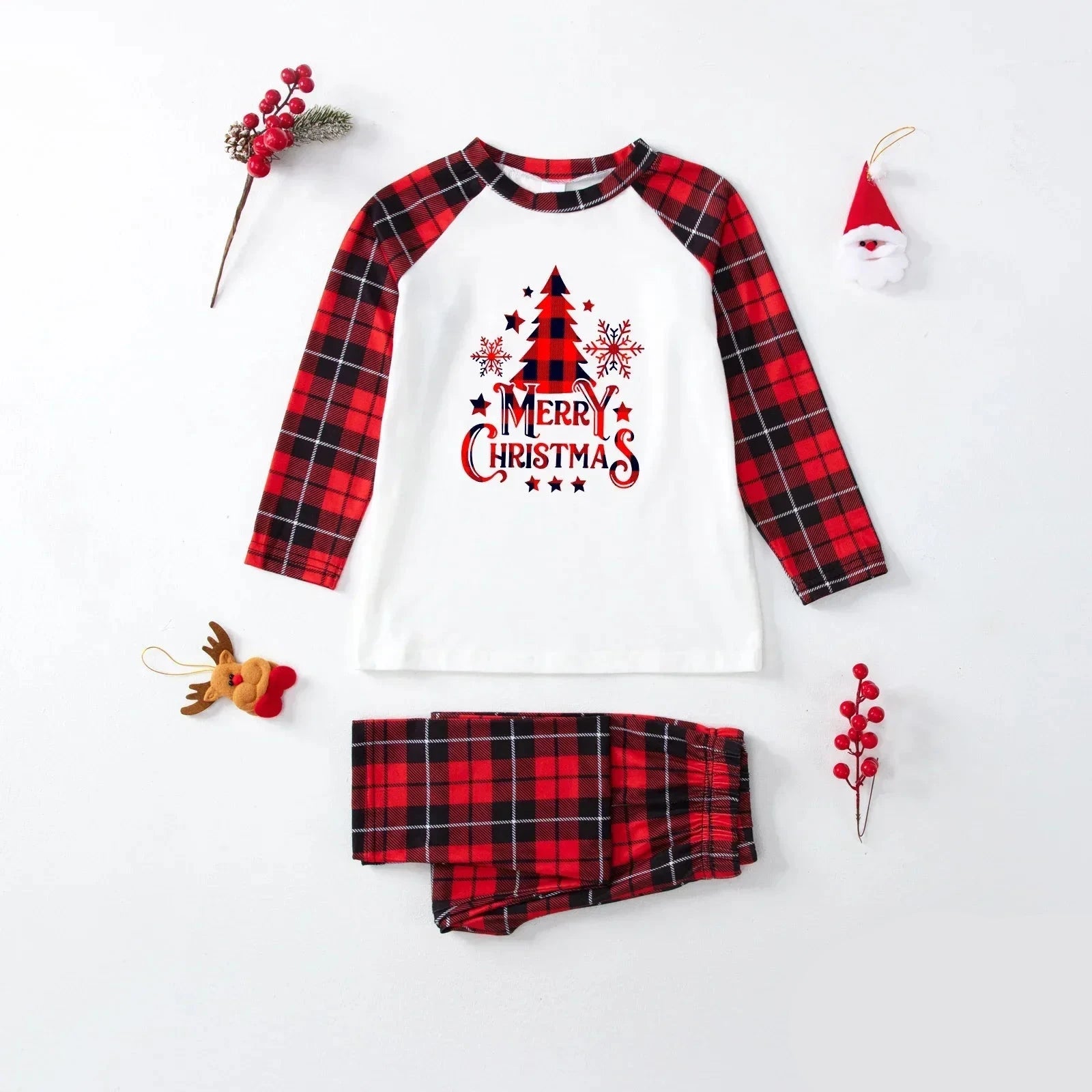 Prepara la tua famiglia a celebrare un Natale indimenticabile con il "Pigiama Natale Famiglia con Motivo a Tartan Rosso" e Stampa Merry Christmas". Questo set coordinato è perfetto per creare un’atmosfera accogliente e divertente, ideale per augurare a tutti un Buon Natale in famiglia.