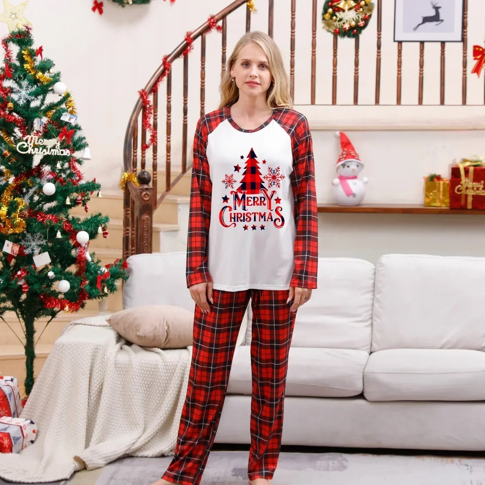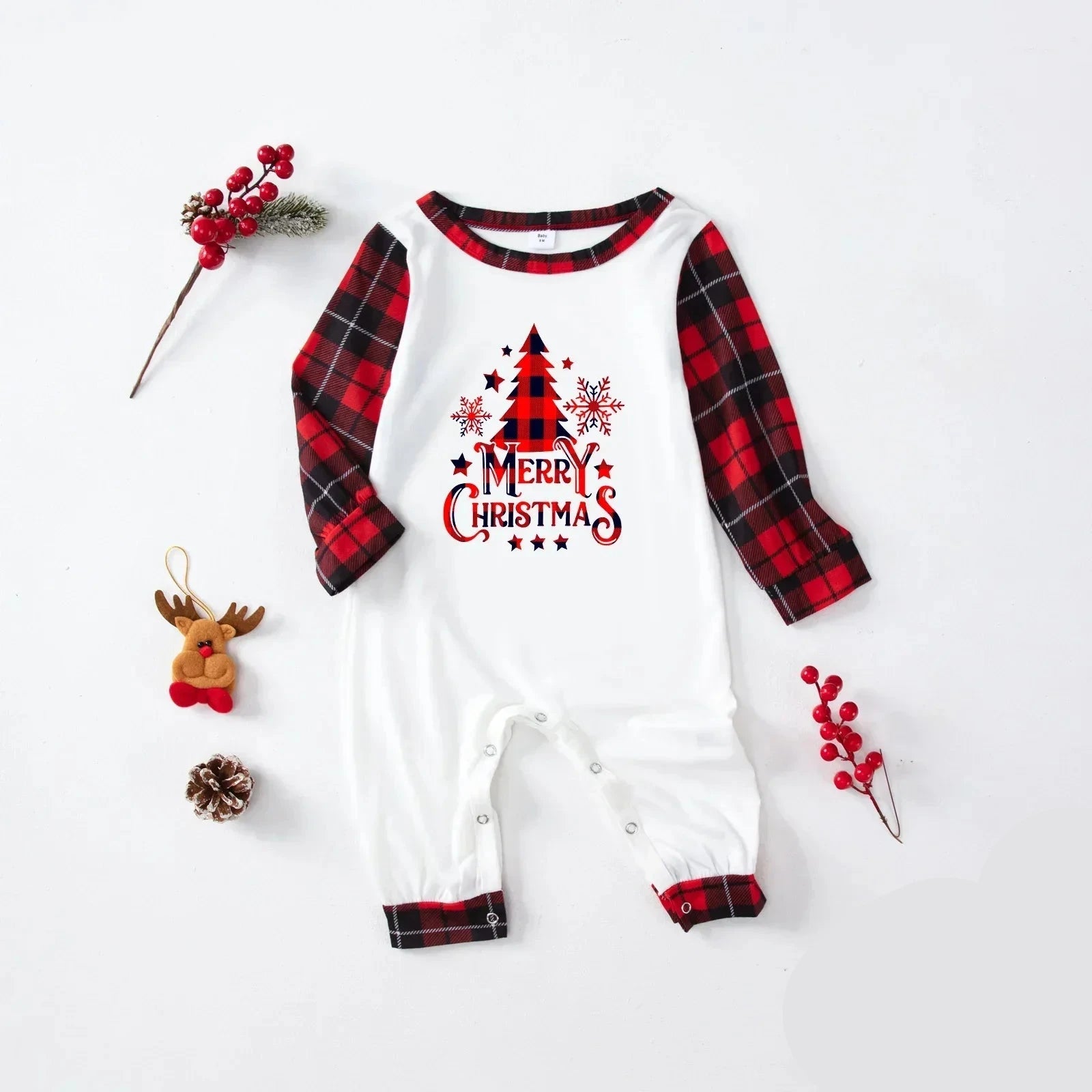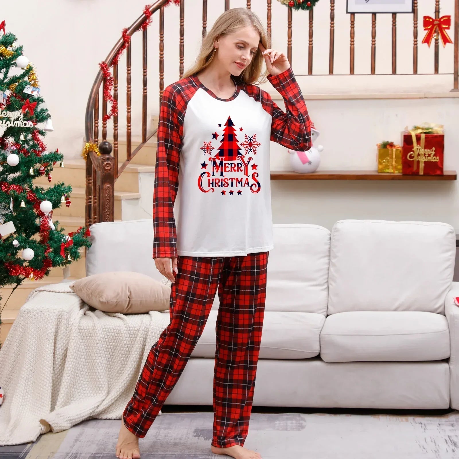 Prepara la tua famiglia a celebrare un Natale indimenticabile con il "Pigiama Natale Famiglia con Motivo a Tartan Rosso" e Stampa Merry Christmas". Questo set coordinato è perfetto per creare un’atmosfera accogliente e divertente, ideale per augurare a tutti un Buon Natale in famiglia.