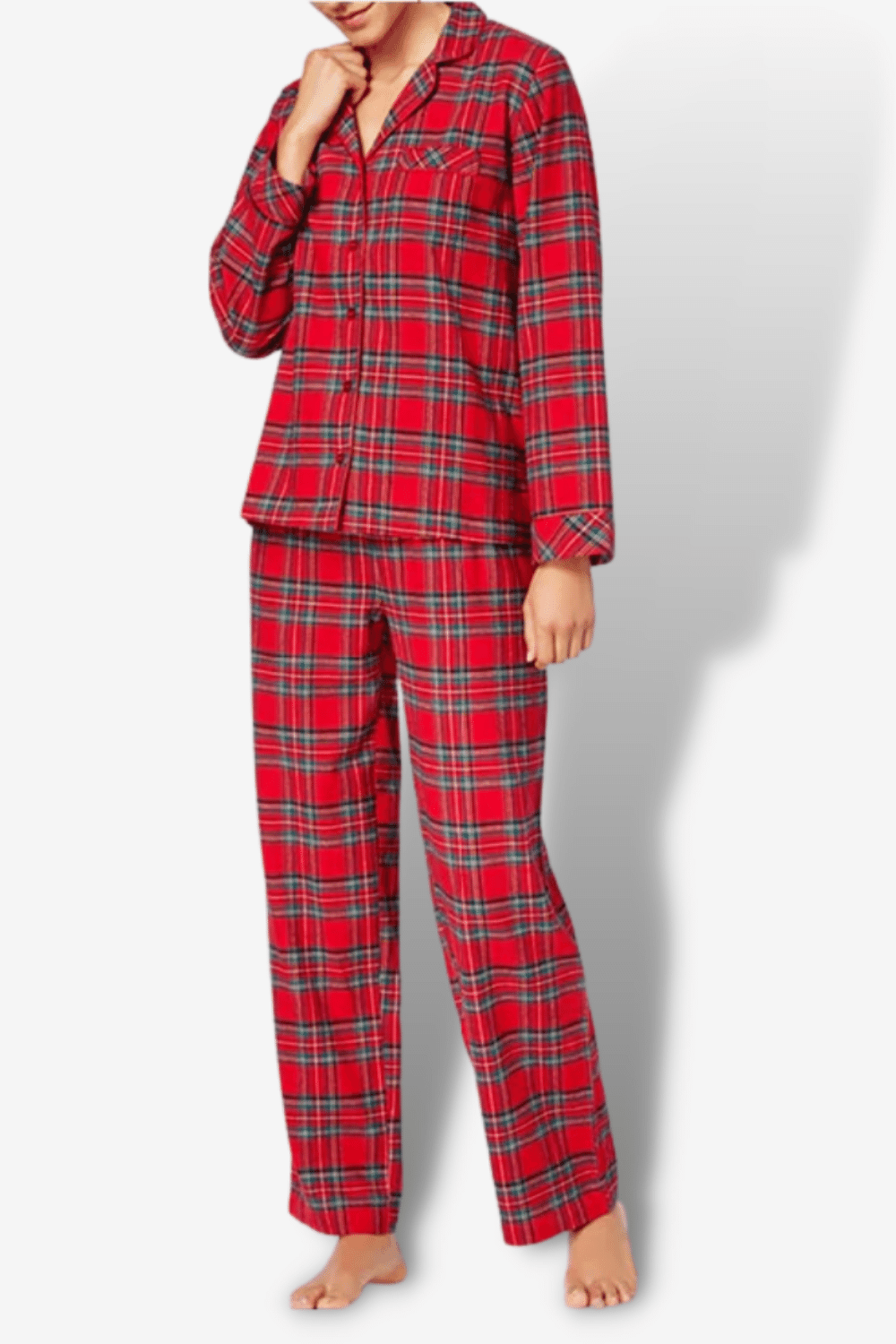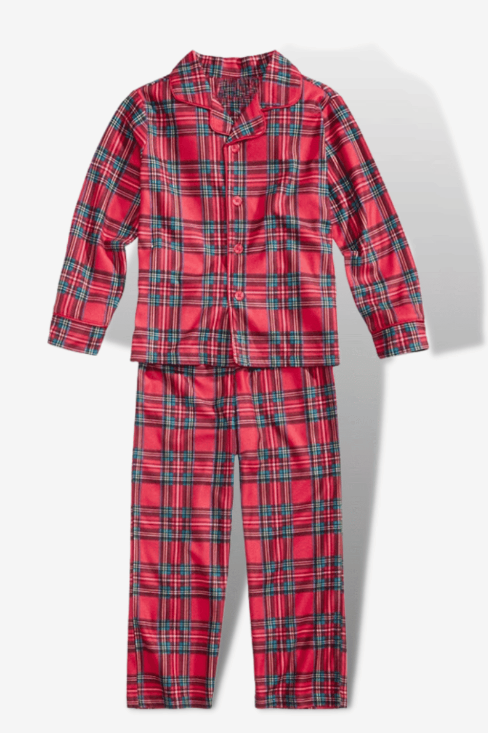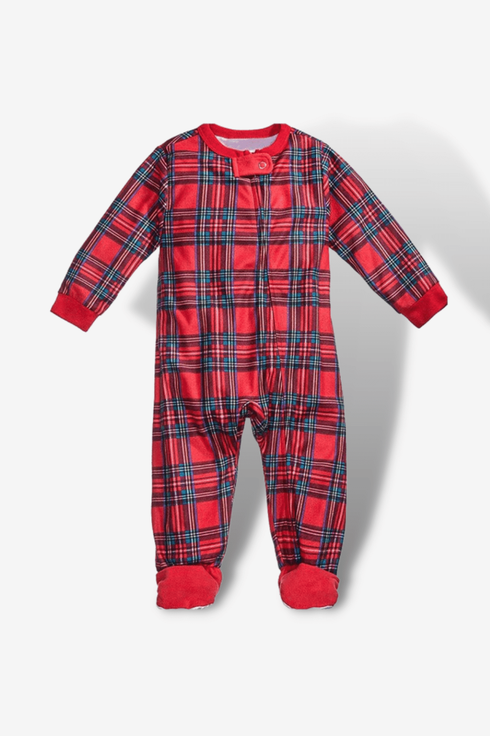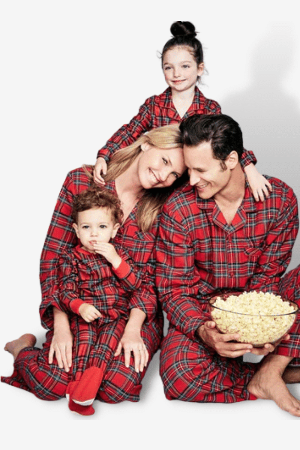 Pigiama plaid per tutta la famiglia di colore rosso, ideale da indossare per il Natale.