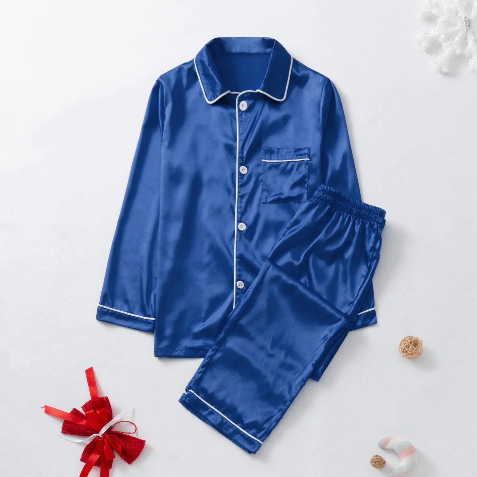 Vivi momenti unici con i nostri pigiami famiglia coordinati in seta blu. Perfetti per tutta la famiglia, questi pigiami combinano eleganza e praticità grazie alla seta di alta qualità e al design a maniche lunghe in un sofisticato colore blu. Ideali per serate rilassanti o per momenti da ricordare con stile.